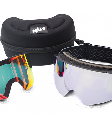 Includes: Goggles, Strap, Keep Safe Case, 2 interchangeable Magnetic Lenses, Cleaning Cloth.